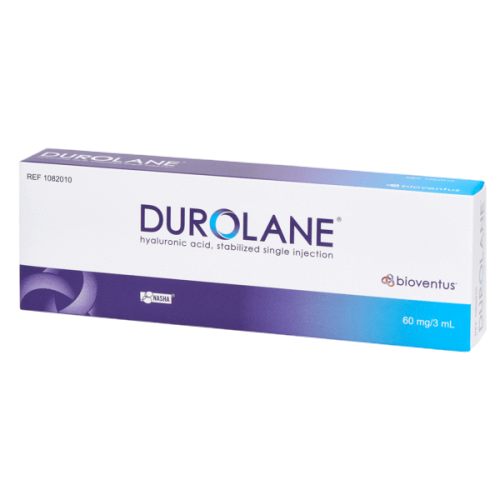 Es sind keine Kontraindikationen bekannt. DUROLANE sollte nicht verwendet werden, wenn an der Injektionsstelle eine Infektion oder Hauterkrankung vorliegt. DUROLANE wurde nicht bei schwangeren oder stillenden Frauen oder bei Kindern getestet. Zu den Risiken können vorübergehende Schmerzen, Schwellungen und/oder Versteifungen an der Injektionsstelle zählen. Die klinische Wirksamkeit wurde bis zu sechs Monate lang bewiesen. Die Ergebnisse können jedoch je nach verschiedenen patientenspezifischen Faktoren variieren.